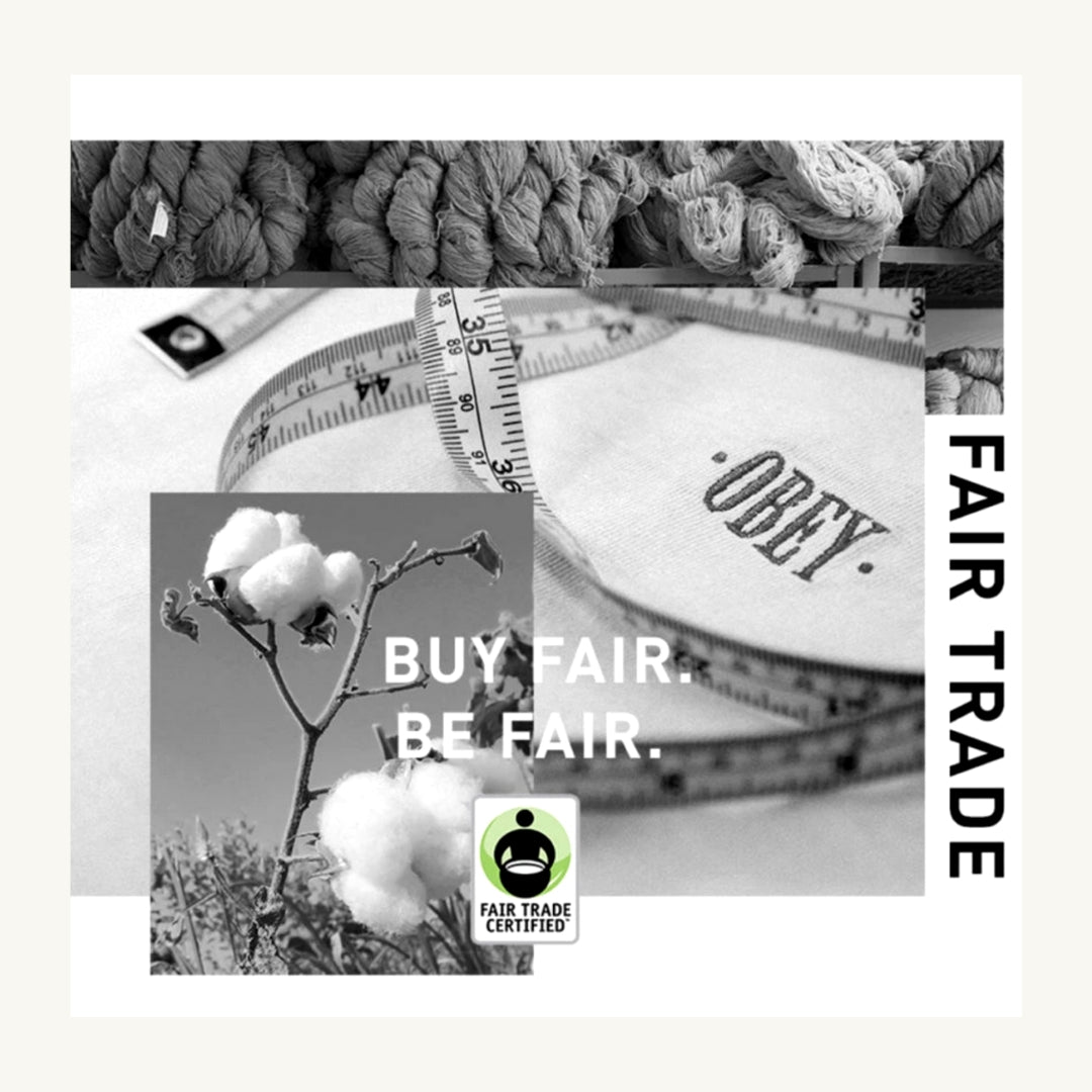 Ethics have been important to OBEY since day one – and now more than ever, it’s important to do the right thing. That’s why we’re proud to shine a light on our Fair Trade Collection – select items in our line that are produced under globally respected standards, easily identifiable by a Fair Trade logo on the hang tag and product photo online.