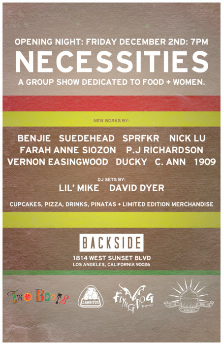 Necessities: A Group Show Dedicated to Food + Women opens at Backside on Sunset Blvd in lovely Echo Park this Friday, December 2nd,.