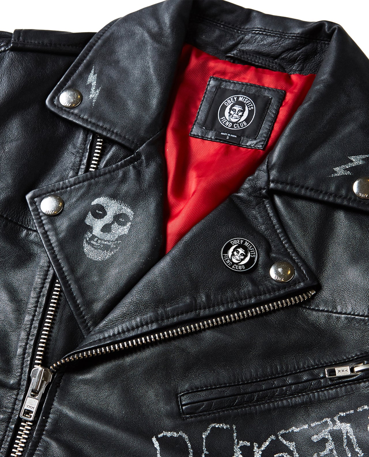 Wednesday, April 18th marks the anniversary of when the Misfits played their first show at CBGB’s in New York City over forty years ago. To commemorate this, we’re releasing the OBEY X Misfits Limited Edition Leather Jacket: a slim fit motorcycle jacket with contrast interior, featuring Misfits collaborative artwork hand stenciled and signed by Shepard Fairey. Each jacket is one of a kind and comes in a custom archival box. Available on OBEY Clothing sites and at select retailers worldwide Weds, April 18th at 10 AM PST.