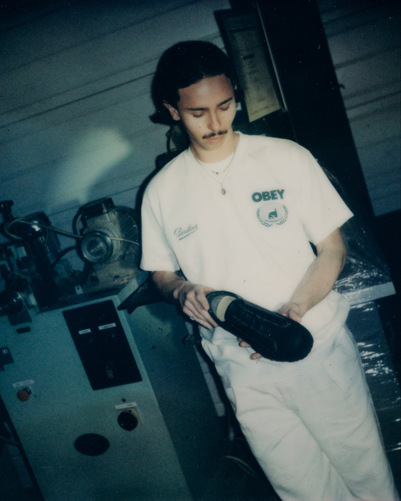 Bright glares and industrial cacophony crescendo into audio-visual harmony, a vessel for the resilience of Paraboot craftsmanship and punk attitude of OBEY.