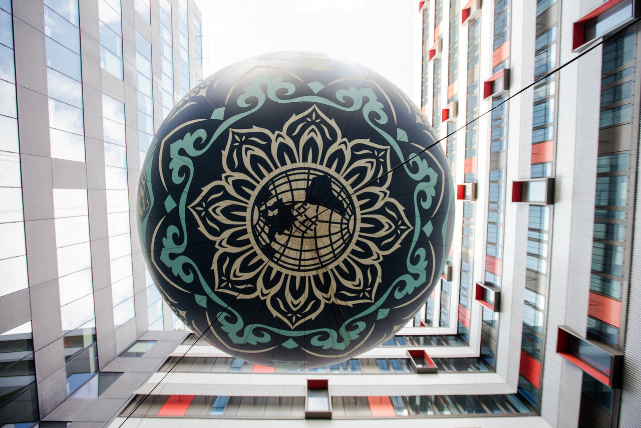 It is very important for me to have an outdoor, free public art component to my art shows, and I was happy I was able to paint an Earth Crisis mural outside the gallery and to have the Earth Crisis globe installed in the courtyard on the night of the opening. On top of that, under the globe, Slimkid from the Pharcyde and Z-Trip DJ’ed and moved the crowd. The turnout to the opening was huge, and the crowd was so supportive, and bonus – it didn’t rain! The indoor/outdoor art and music combination was incredible and couldn’t have happened without a dedicated effort on behalf of the gallery crew specifically – Mehdi and Baimba; and my crew – Dan Flores, Nic Bowers, Rob Zagula, and photographer Jon Furlong; and DJ’s Slimkid and Z-Trip as well as Lorrie Boula and Kevin Abrantes. Thanks y’all!