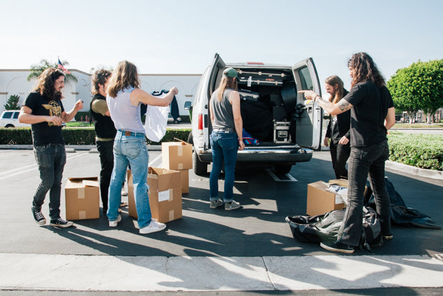 These backyard pool-shredding, acid-dropping dudes are better known as The Shrine and Dirty Fences. These guys play loud and they play fast. In conjunction with the launch of their ‘West Coast Worship’ tour, the dudes piled into the van and swung by the OBEY Clothing offices to grab their merch and head right back on the road to their first stop of the tour – tonight in San Diego, CA (check flyer below for details)