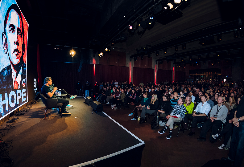 The evening began with a performance by Berlin-based garage duo Cava, followed by a Q&A with Shepard Fairey hosted by Lodown Magazine’s editor-in-chief, and longtime friend, Sven Fortmann. After exploring the impressive Fotografiska building and the exhibition itself, the night closed with a DJ set by Shepard Fairey.