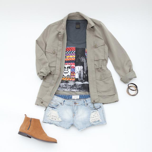 Heading to your local dive bar? Mix a Woodside tee with a little leather and tiger camo and you’ve got an outfit made to last the whole night.