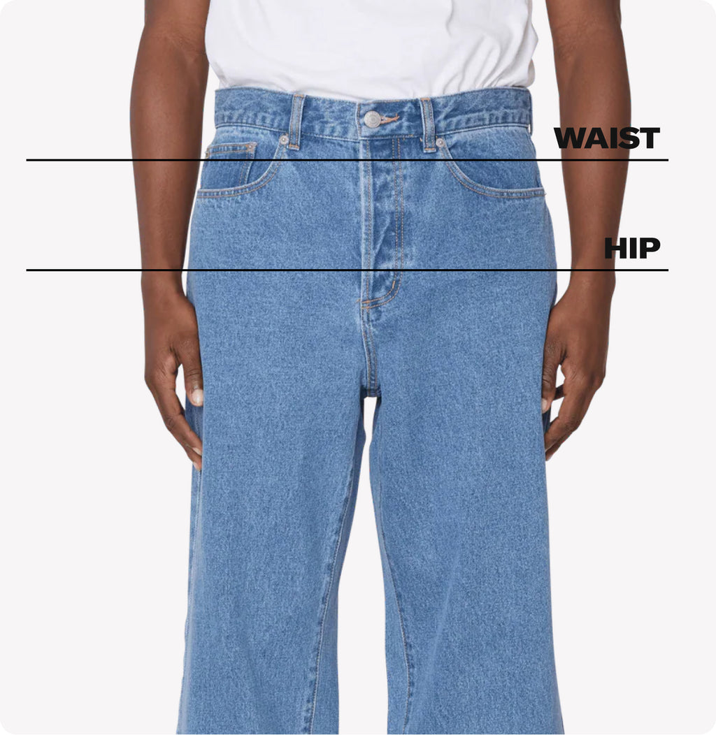 Measure across the widest part (usually 7–8 IN below the waistband).