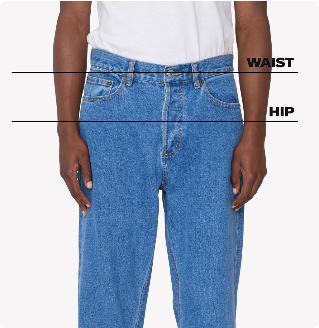 Measure across the widest part (usually 7–8 IN below the waistband).